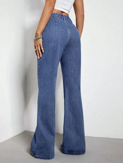 Raw Hem Bootcut Jeans with Pockets