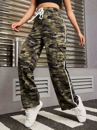 Tied Camouflage Pants with Cargo Pockets