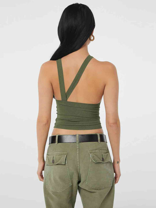 Halter Neck Ribbed Cropped Top