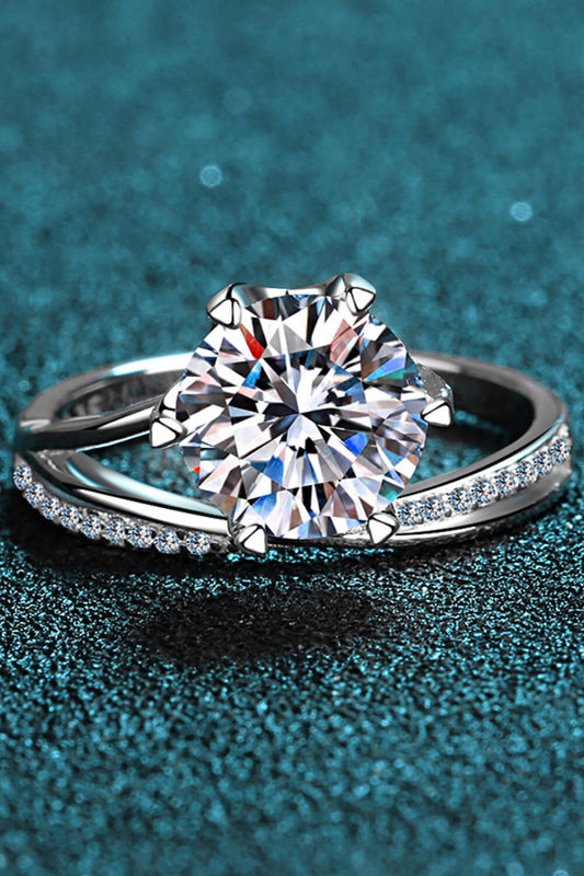 2 Carat Moissanite 925 Sterling Silver Side Stone Ring